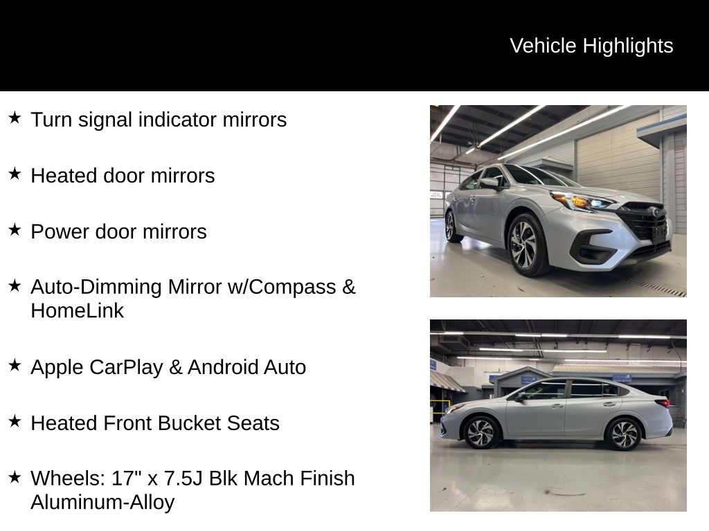 **ONE OWNER**, **ACCIDENT FREE CARFAX HISTORY REPORT**, **NON SMOKERS VEHICLE**, Subaru Certified Pre-Owned Certified, 6 Speakers, AM/FM radio: SiriusXM with 360L, Apple CarPlay & Android Auto, Auto-Dimming Mirror w/Compass & HomeLink, Exterior Parking Camera Rear, Heated door mirrors, Heated Front Bucket Seats, Power door mirrors, Power driver seat, Radio: Subaru 11.6" Multimedia Plus System, Turn signal indicator mirrors, Wheels: 17" x 7.5J Blk Mach Finish Aluminum-Alloy, 4-Wheel Disc Brakes, ABS brakes, Air Conditioning, All-Weather Floor Liners, Alloy wheels, Anti-whiplash front head restraints, Auto High-beam Headlights, Automatic temperature control, Brake assist, Bumpers: body-color, Cloth Upholstery, Driver door bin, Driver vanity mirror, Dual front impact airbags, Dual front side impact airbags, Electronic Stability Control, Emergency communication system: MySubaru Safety Plus (3-year free trial included), Four wheel independent suspension, Front anti-roll bar, Front Bucket Seats, Front Center Armrest w/Storage, Front dual zone A/C, Front reading lights, Fully automatic headlights, Heated front seats, Illuminated entry, Knee airbag, Leather steering wheel, Low tire pressure warning, Occupant sensing airbag, Outside temperature display, Overhead airbag, Overhead console, Panic alarm, Passenger door bin, Passenger vanity mirror, Power steering, Power windows, Rear anti-roll bar, Rear Bumper Applique, Rear seat center armrest, Rear window defroster, Remote keyless entry, Security system, Speed control, Speed-sensing steering, Split folding rear seat, Standard Model, Steering wheel mounted audio controls, Tachometer, Telescoping steering wheel, Tilt steering wheel, Traction control, Trip computer, Variably intermittent wipers, 6 Speakers, AM/FM radio: SiriusXM with 360L, Apple CarPlay & Android Auto, Auto-Dimming Mirror w/Compass & HomeLink, Exterior Parking Camera Rear, Heated door mirrors, Heated Front Bucket Seats, Power door mirrors, Power driver seat, Radio: Subaru 11.6" Multimedia Plus System, Turn signal indicator mirrors, Wheels: 17" x 7.5J Blk Mach Finish Aluminum-Alloy.
